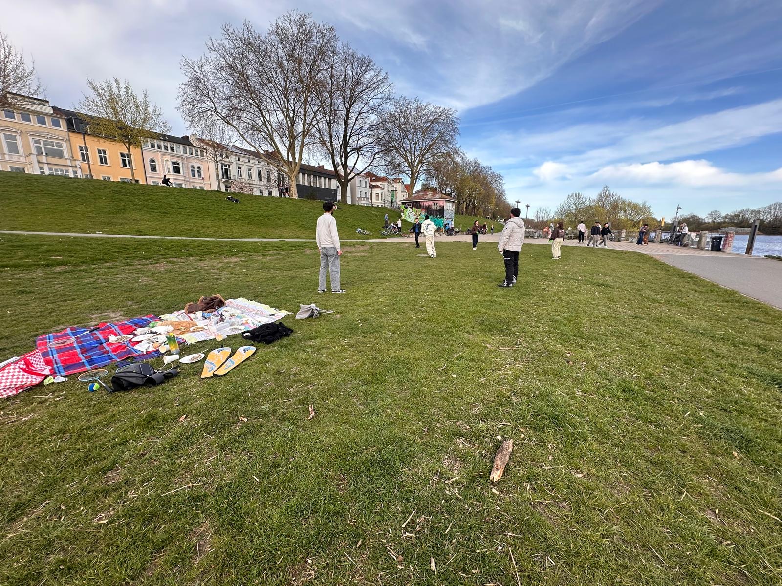 Am 08.04.2026 haben wir gemeinsam mit den Jugendlichen ein sehr schönes und langes Picknick veranstaltet. Nachdem alle aus der Schule zurückgekommen waren, sind wir gegen 16:00 Uhr zum Weserufer gegangen. Dort haben wir unsere Picknickdecken ausgebreitet und Essen sowie Getränke vorbereitet.